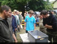Fischerkönig wurde unser Mitglied Robert Ammon (rechts) mit einen Karpfen von 4800 Gramm. Ebenfalls mit einem Karpfen, der 3150 Gramm auf die Waage brachte, erlangte Peter Eberhard (zweiter von links) das Amt des Jugendfischerkönigs. Aitelkönig wurde unser Mitglied Sven Großberger (links). Er brachte eine Aitel mit einem Gewicht von 1450 Gramm zum Abwiegen. Die weiteren Platzierungen können hier eingesehen werden.