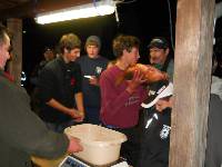 Die Brachsen bissen wie verrückt und auch einige Karpfen wurden gefangen. So konnten Hannes und Bernd Eberhardt je einen Karpfen mit neun Pfund und Johannes Berger einen Karpfen mit knapp 5 Pfund überlisten. Benedikt Schmidt hatte einen ordentlichen Zander an der Angel, der aber kurz vor dem keschern wieder abkam. Beim Abwiegen der Fische zeigte sich dann, dass auch die anderen Jugendlichen erfolgreich waren. Viele Karpfen (bis 18 Pfund), 1 Zander mit ca. 70 cm, ein Hecht (65 cm) und unzählige Brachsen wurden zum Abwiegen gebracht.